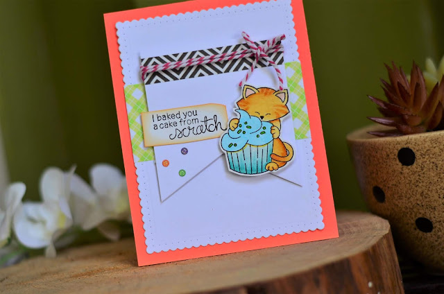I have a quick post for today.Made this super cute card for a friend whom we(me and my two daughters,4 and 8 years old) actually baked a cake from scratch....LOL...I am not a cake making person but this one I wanted to try...what better than gifting a catty card to someone who loves cakes and cats both.Here is my card